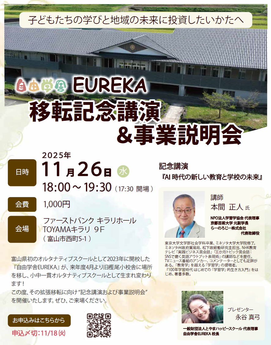 ※ご返信は「event@toyama-happyschool.org」のアドレスより送信いたします。迷惑メールとして振り分けられないよう、“event@toyama-happyschool.org”をアドレス指定受信リストに加えていただくか、“toyama-happyschool.org”のドメイン解除の設定をおすすめいたします。