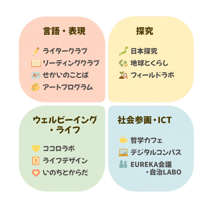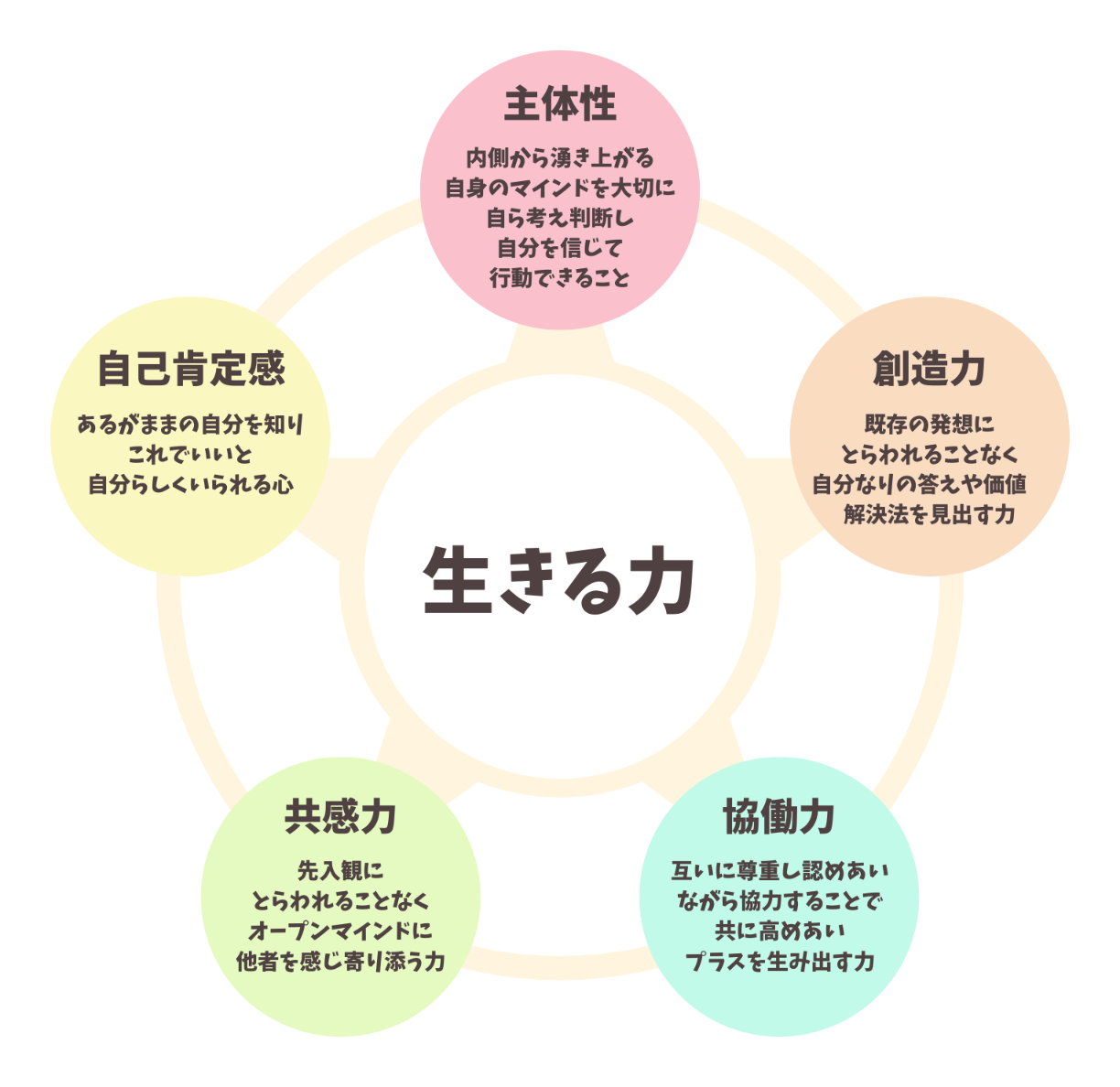 探究する力を養い、「自分はどう生きたいか」という問いを持って、社会のなかで選び、つながり、動き出せる土台=自分らしく生きるための力を培う